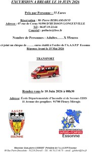L’AASPP91, en partenariat avec l’UDSP 91 et le SDIS 91, propose à ses ADHÉRENTS « Anciens Sapeurs-Pompiers de Paris » une belle journée d’évasion ..