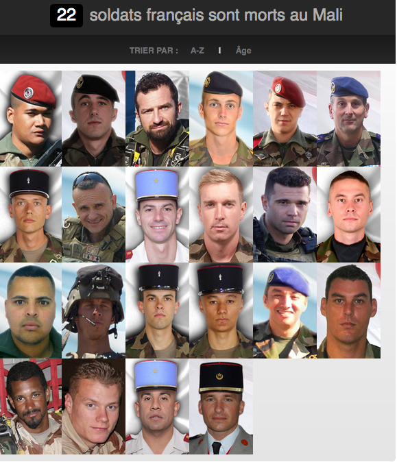 Ils sont tombés dans l_accomplissement de leur mission au Sahel Publié 27/02/2018 à 579 × 674 dans Un nom et un visage pour les 22 soldats français morts au Sahel depuis 2013 Suivant → Partager : Partager sur Facebook(ouvre dans une nouvelle fenêtre) Facebook Partager sur X(ouvre dans une nouvelle fenêtre) X J’aime chargement…