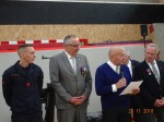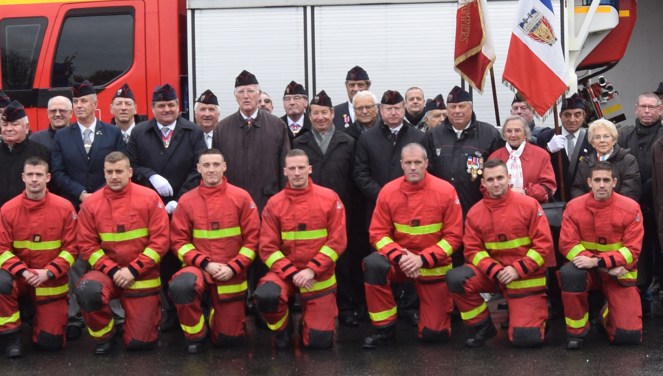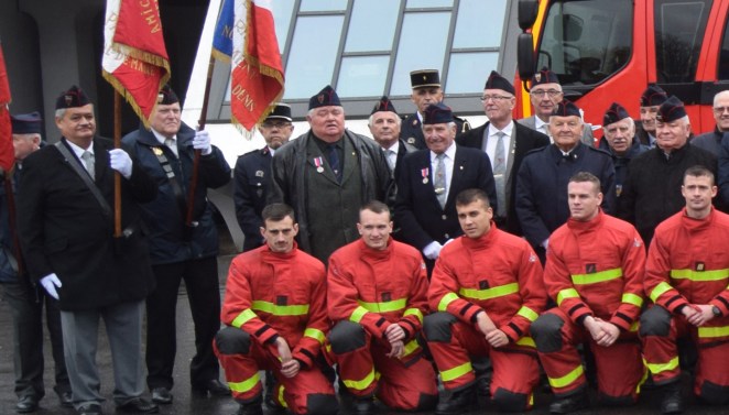 A l’issue de cette Assemblée Générale, a eu lieu la cérémonie de Devoir de Mémoire en présence de nombreux sapeurs pompiers.. ainsi que des anciens.. lecture de l’appel des Morts au feu et dépôt de fleurs.. le drapeau de leur amicale honoré par une remise de médaille de la FNASPP.. Médaille d’honneur de la FNASPP… ainsi que 3 récipiendaires Messieurs Pierre DELIENNE, Bernard CHARTON et Gilles BONIN, ont également été décorés de la médaille d’honneur échelon argent de la FNASPP par le Président Thierry GUILMIN… devant le monument aux morts et ce fut la photo de souvenir du groupe.